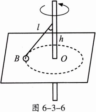 9. 如图6-3-6所示,在光滑水平面上,有一转轴垂直于此平面,交点O的上方h处固定一细绳,绳的另一端连接一质量为m的小球B,绳长$l>h$,小球可随转轴转动在光滑水平面上做匀速圆周运动, 要使小球不离开水平面,求转轴转速的最大值是多少?