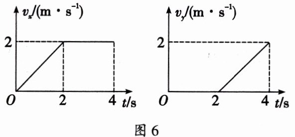 8. 在一光滑水平面内建立平面直角坐标系,一物体从t= 0时刻起,由坐标原点O(0,0)开始运动,其沿x轴和y轴方向运动的速度-时间图像如图6甲、乙所示,下列说法中正确的是(