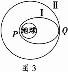 8. 如图3所示,在发射地球同步卫星的过程中,可使卫星首先进入椭圆轨道Ⅰ,然后在Q点通过改变卫星速度,让卫星进入地球同步轨道Ⅱ,则(