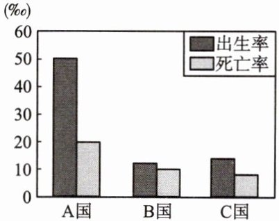 ‰。(2)在A、B、C三国中,人口自然增长率最高的是
