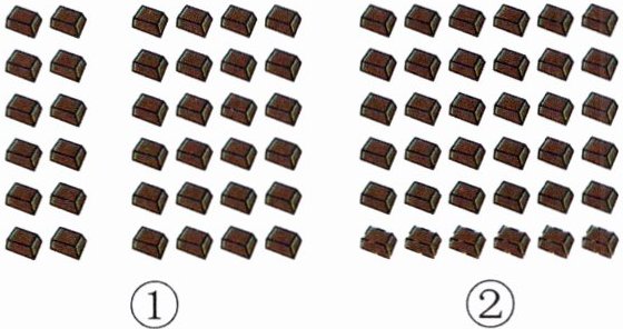 (1)如图①,求一共有多少块巧克力,可以想6个6等于( )个6加( )个6。