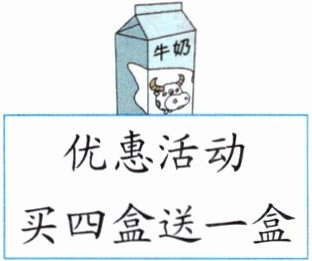 5 - 1=4(盒) 6×4=24(元) 解析:因为优惠活动是买四盒送一盒,所以买5盒牛奶,实际只要付买4盒牛奶的钱。