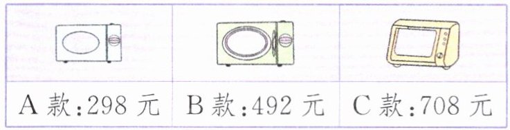 4.(生活应用)张阿姨去商场,看到三款微波炉的价钱如下表。