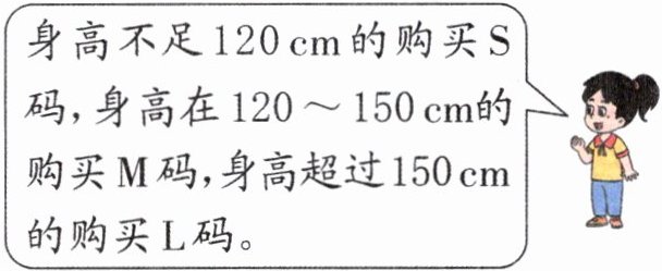 身高不足120 cm的购买S码,身高在120~150 cm的购买M码,身高超过150 cm的购买L码。