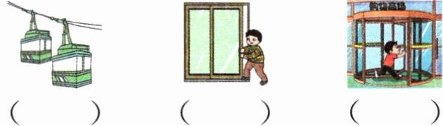 1. 下面的运动中,是平移的在( )里画“√”,是旋转的在( )里画“○”。