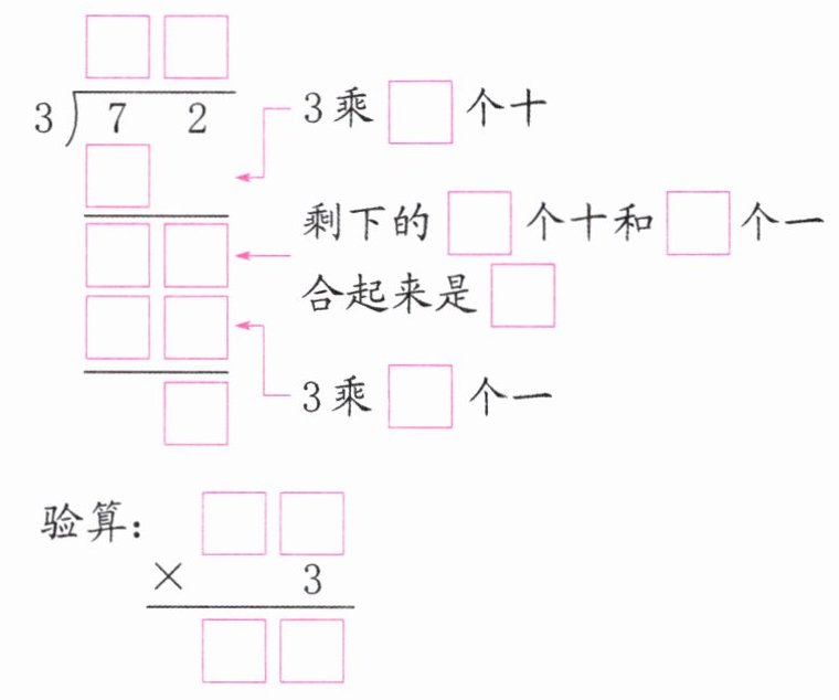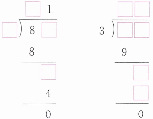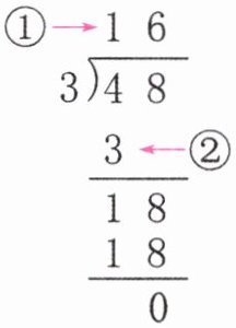 3.(易错题)有48本书,平均分给3个班。小明用右面的竖式计算每个班分到的本数。