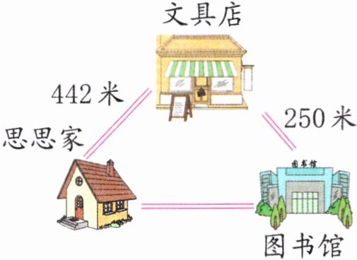 4. (生活应用)思思从家出发,经过文具店到图书馆。
