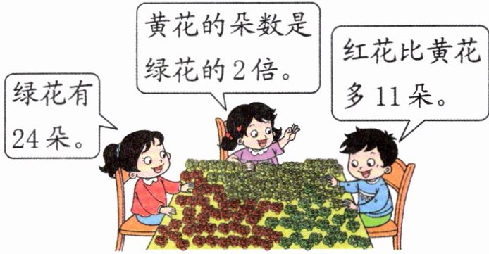 5.(五育并举)为欢庆儿童节,小朋友们做纸花装饰教室。他们做了多少朵红花?(先画图理解题意,再列式计算)