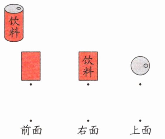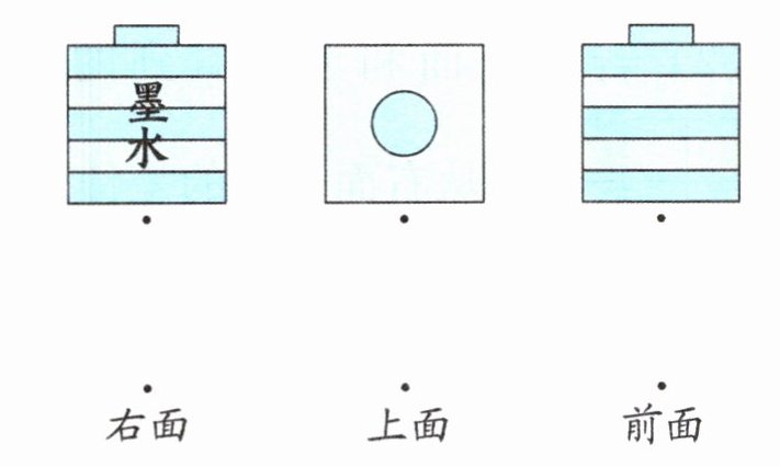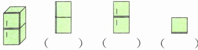 3. 小明从前面、右面和上面观察家里的冰箱,你知道下面的三幅图分别是他从哪一面看到的吗?填一填。