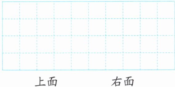 4. 用4个同样大的正方体拼成一个长方体,从前面看到的是□。在方格纸上画出从上面和右面看到的图形。