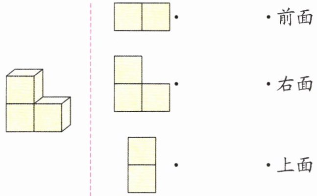 3.(名校真题)用5个同样大的正方体摆出下面的物体,从前面、右面和上面看到的分别是什么图形?在方格纸上画一画。