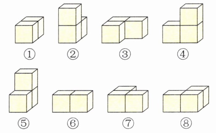 5.(思维过程)用5个同样大的正方体摆成一个物体,从右面看到的是,从上面看到的是。一共有多少种不同的摆法?