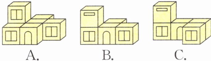(1)在如图所示的房子模型中,从任何一面都看不到右图的是( )。