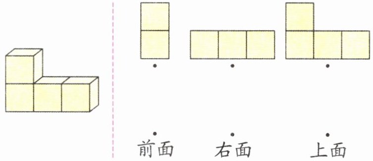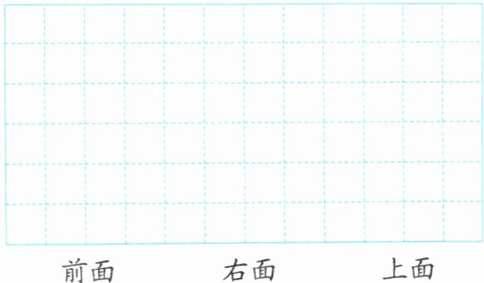 摆一个长方体,从前面、右面和上面看一看,分别画出看到的图形。