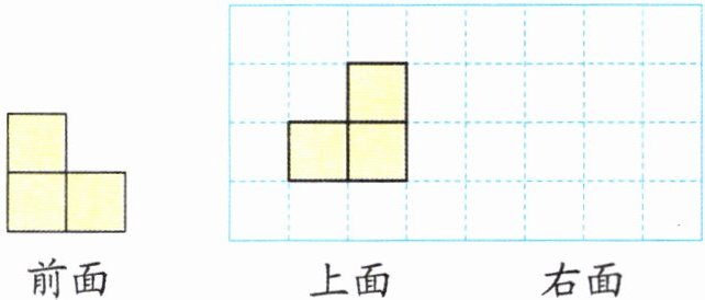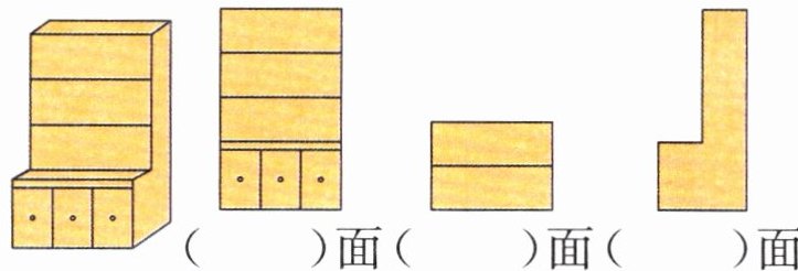 1. 下面的图形分别是从柜子的哪一面看到的?(填“前”“右”或“上”)
