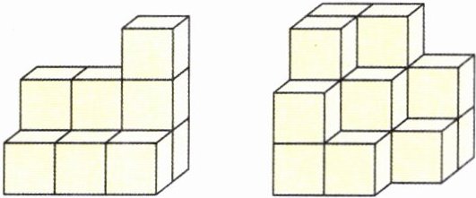 5. 下面的物体是由一些同样大的正方体摆成的,要使左下图变成一个大长方体,至少要添加( )个同样大的正方体;要使右下图变成一个大正方体,至少要添加( )个同样大的正方体。