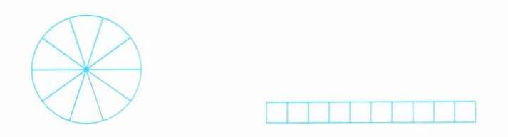 1. 下面每个图形都表示整数“1”,把涂色部分分别用分数和小数表示出来。