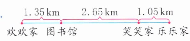 (1)欢欢家和笑笑家相距多少千米?欢欢和笑笑各自从家出发到图书馆,欢欢比笑笑少走多少千米?