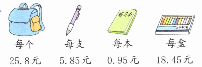每个 25.8元 每支 5.85元 每本 0.95元 每盒 18.45元