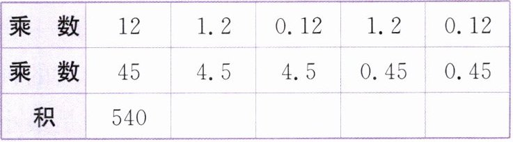 | 乘 数 | 12 | 1.2 | 0.12 | 1.2 | 0.12 |