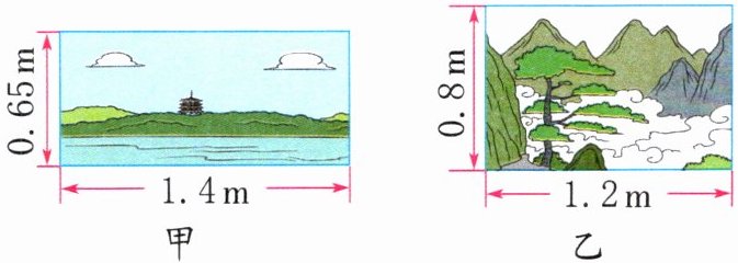甲:$1.4×0.65=0.91(m^{2})$ 乙:$1.2×0.8=0.96(m^{2})$