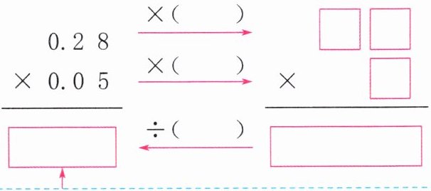 $\begin{array}{r} 0.2\ 8\\ ×\ 0.0\ 5\\ \hline \end{array} \xrightarrow {×(100)}$
