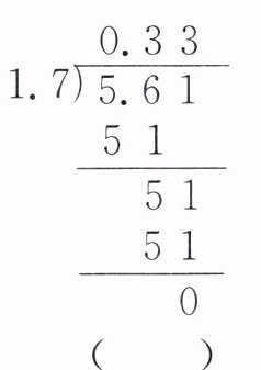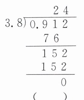 3.952÷0.76=5.2 18.27÷2.1=8.7 1.904÷3.4=0.56 0.14÷0.25=0.56