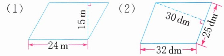 2. 根据对应的底和高,计算下面平行四边形的面积。