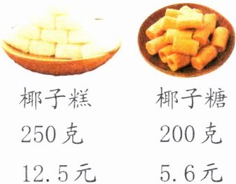 椰子糕:1000÷250×12.5=50(元)或12.5÷250×1000=50(元)