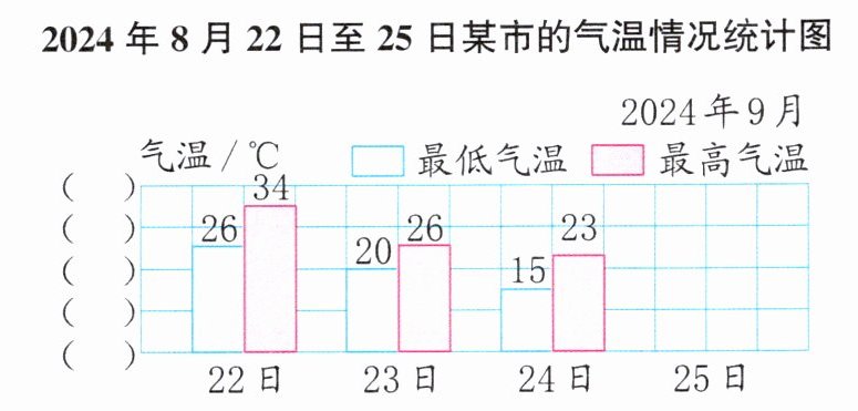 (2)25日的最低气温与24日的相同,这天的最高气温比最低气温高10℃。请你根据这条信息将统计图补充完整。