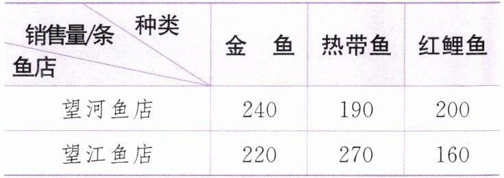 2.越越调查了望河鱼店和望江鱼店的三种鱼在某个星期日的销售情况,记录如下表: