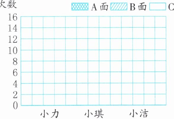 (2)C A 解析:可以分别计算出三名同学抛正方体木块后,A、B、C面朝上的总次数,再比较;也可以直接根据直条的高低情况回答。