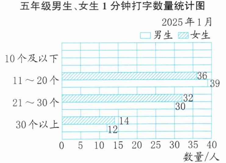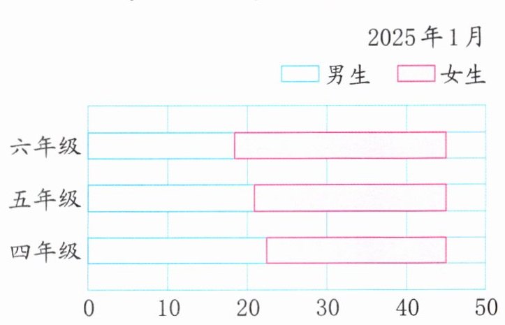 4. 五年级男生有104人,女生有97人。请把下面的统计图补充完整。