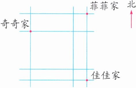 4. 如图,奇奇准备从家出发去菲菲家玩,只能向东或向北走,一共有多少种不同的路线?奇奇从家出发去佳佳家玩,只能向东或向南走,一共有多少种不同的路线?