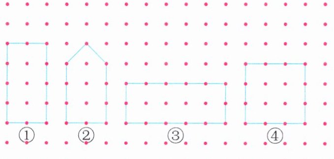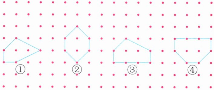 4.(操作探究)在下面的钉子板上画两个面积都是8.5平方厘米的多边形,要求每个图形的形状都不相同,且多边形内的钉子数也不相同。(横、竖每相邻两枚钉子之间的距离都是1厘米)