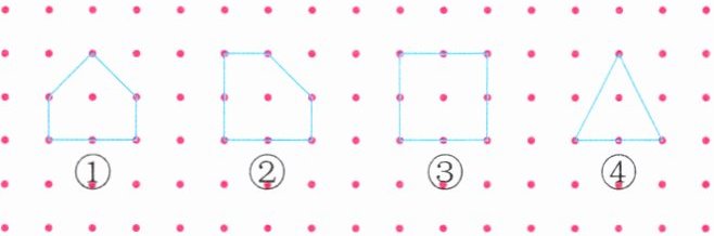3. 如果多边形内有3枚、4枚钉子,那么多边形的面积与它边上的钉子数的关系会怎样变化?在钉子板上数一数,算一算,找出规律。(横、竖每相邻两枚钉子之间的距离都是1厘米)