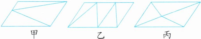 4. 如图,在三个完全相同的平行四边形中,涂色部分的面积相比较,正确的是( )。