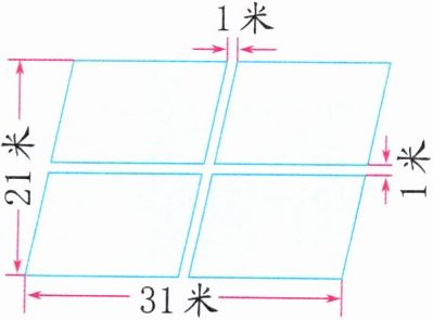 5. 如图所示为一片平行四边形的小树林的示意图,中间有两条石子路。如果每棵树占地 2 平方米,那么这片小树林一共有多少棵树?
