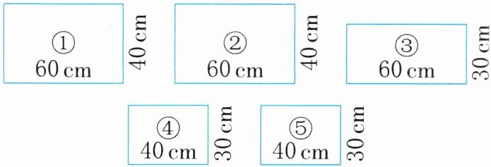 5.(创新应用)用下面的五块玻璃做成一个无盖的鱼缸,底面应是( )号,这个鱼缸深( )dm,侧面积是$( )dm^2。$(玻璃的厚度忽略不计)