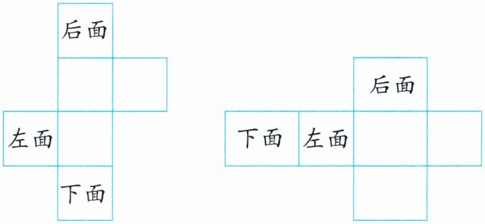 2. (操作探究)下面是正方体和长方体的展开图,请在展开图上标出上面、前面和右面。