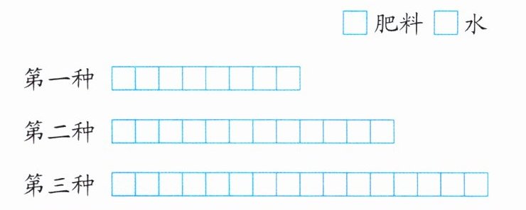 6. 在果园里,不同的果树需要喷洒不同浓度的营养液,下图表示几种营养液中肥料与水的比,请将表格填写完整。