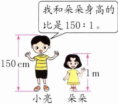 不对 因为 150 cm 与 1 m 的单位不统一,需先统一单位,再化简比,150 cm:1 m=150 cm:100 cm=3:2