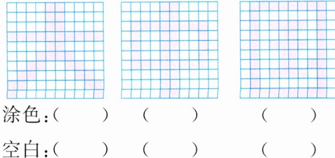 3. 下面每个大正方形都表示“1”,涂色部分和空白部分各占“1”的百分之几?