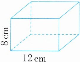 7. 如图,一个长方体的长是12 cm,高是8 cm,左面和下面两个面的面积和是$220 cm^2。$这个长方体的体积是多少立方厘米?