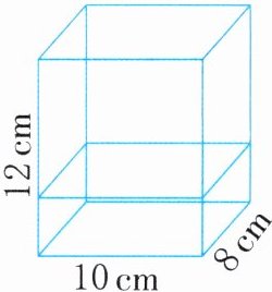 6. 有一个长方体玻璃容器,长10 cm,宽8 cm,高12 cm,向容器内倒水,当容器中的水所形成的长方体第一次出现相对的两个面是正方形时,水的体积是多少立方厘米?