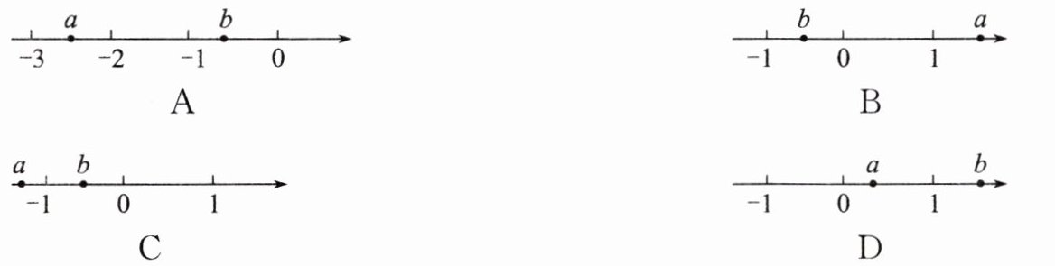 4. 如图,数轴上的点分别表示有理数 a,b,若 a>b,其中表示正确的图形是( )
