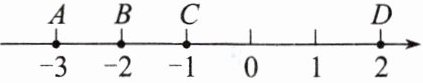 3. 如图,数轴上 A,B,C,D 四点中,表示的数与-1.7 最接近的是______.