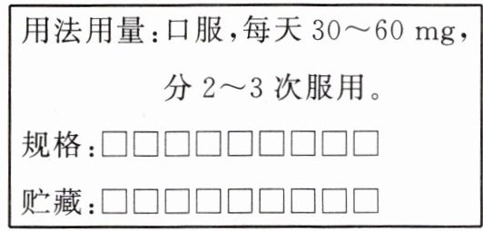 用法用量:口服,每天30~60 mg,分2~3次服用。