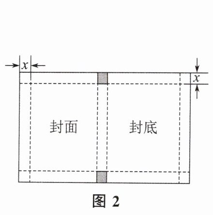 (2)当x=2cm时,(38+2x)(26+2x)=(38+4)×(26+4)=42×30=1260(cm²).答:他所用的包书纸的面积是1260cm².