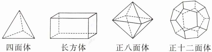 (3)由每个顶点处都有3条棱,得3V÷2=E=36,解得V=24,代入E=V+F-2,得F=14. 设三角形的个数为x,根据题意,得3x+8(14-x)=24×3,解得x=8,即三角形的个数为8.